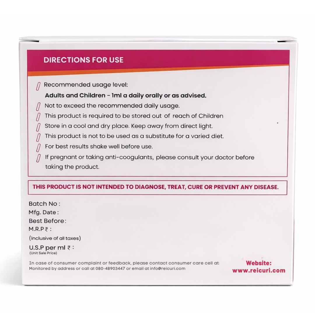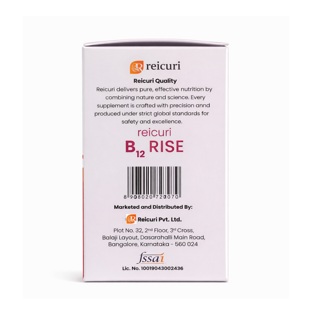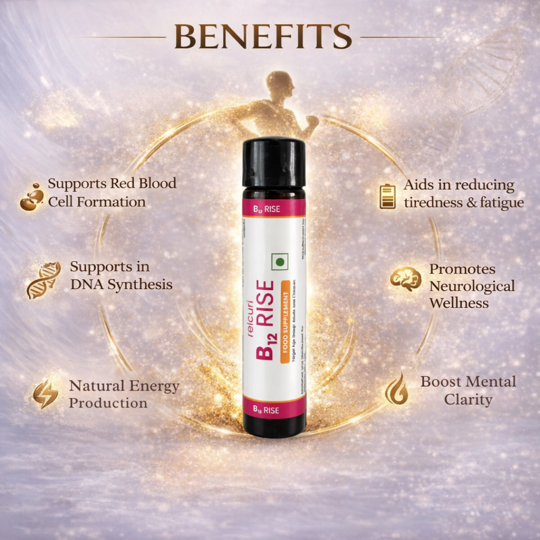 *Each 1 ml serving of Reicuri B₁₂ RISE provides 100% of the recommended daily allowance (RDA) of Vitamin B12 as per Indian RDA guidelines.